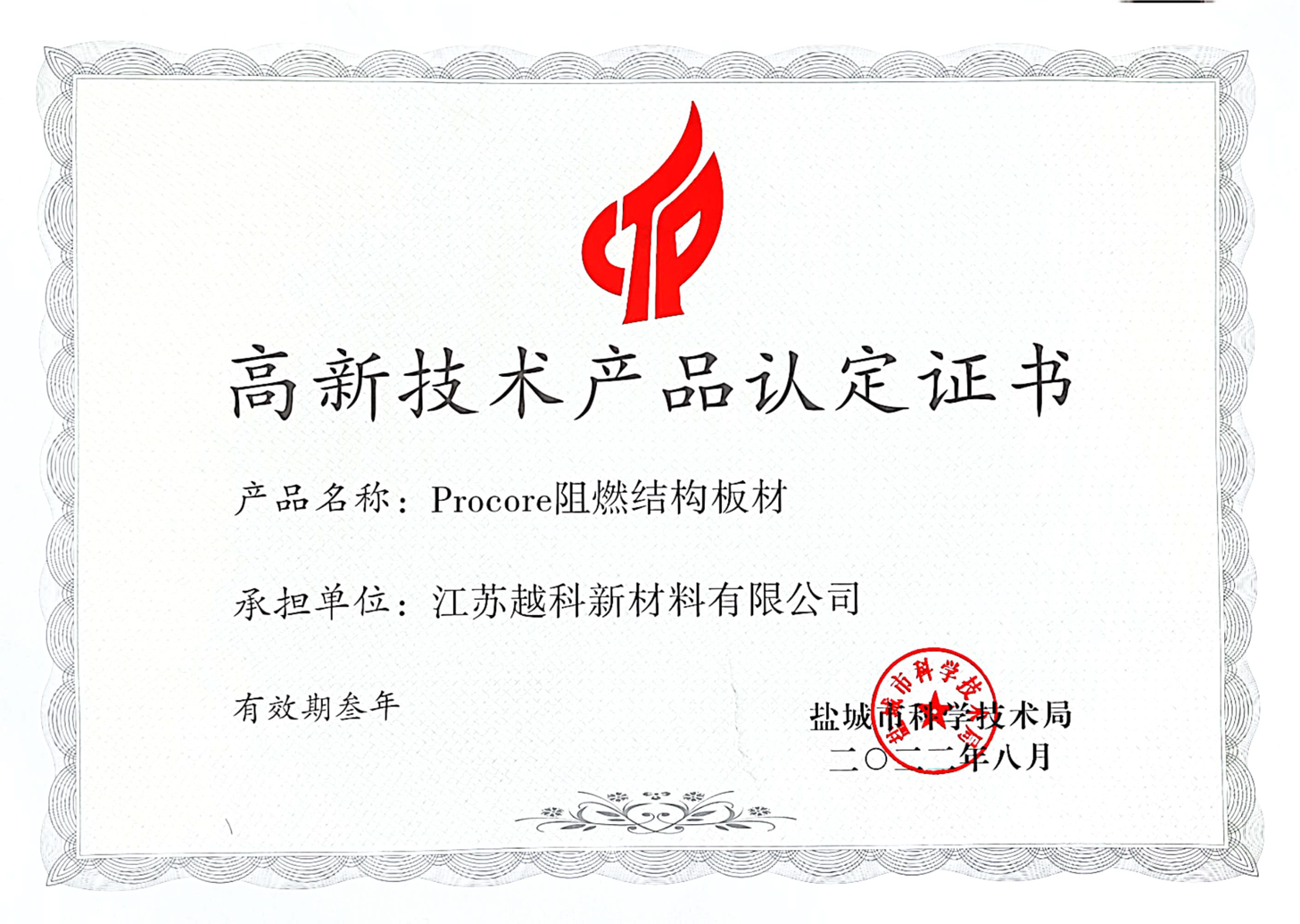 Procore阻燃結(jié)構(gòu)板材獲得高新技術(shù)產(chǎn)品認(rèn)證。